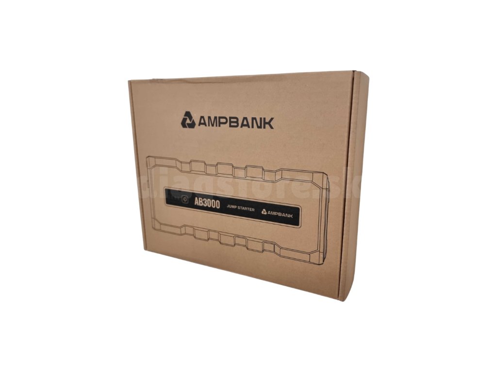 - Výkonný štartér batérie – štartovací powerbank (jump starter) AMPBANK AB3000 má špičkový prúd 3000 A a dokáže počas niekoľkých sekúnd naštartovať takmer všetky 12V motory vozidiel (do objemu 8l (benzín) alebo 6l (diesel)). Je dokonale kompatibilný s 12V automobilmi, nákladnými vozidlami, SUV, motocyklami, traktormi, kosačkami na trávu atď.