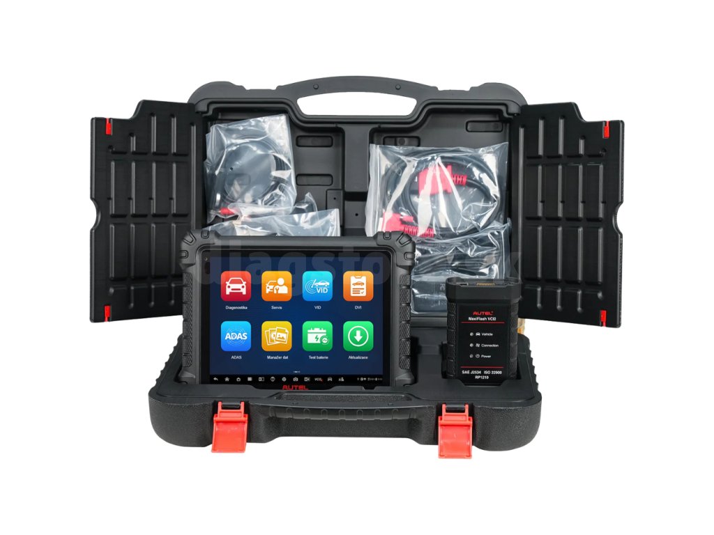 Autel MaxiSys MS909S2 je jeden z najpokročilejších diagnostických systémov v sérii MaxiSys a je určený pre profesionálne servisné strediská, ktoré pracujú s modernými vozidlami a komplexnými komunikačnými protokolmi. Ponúka kompletnú diagnostiku všetkých riadiacich jednotiek, pokročilú analýzu údajov, zobrazenie topológie ECU (Topology 3.0) a podporu online kódovania a programovania ECU. Systém je založený na výkonnom tablete s operačným systémom Android 13, osemjadrovom procesore, 12 GB RAM a 256 GB vnútornej pamäte, čo zaručuje rýchlu odozvu aj pri práci s veľkým množstvom živých dát. Zahŕňa rozhranie MaxiFlash VCI2, ktoré podporuje komunikáciu cez USB, Wi-Fi a Bluetooth a spĺňa normy SAE J2534, ISO 22900 a RP1210 pre programovanie PassThru. Významnou výhodou je hlasový asistent AI, ktorý umožňuje hands-free ovládanie diagnostiky (spúšťanie skenovania vozidla, otváranie servisných funkcií, aktívne testy atď.). MS909S2 tiež podporuje pokročilú digitálnu kontrolu vozidla (DVI), vrátane práce s fotografiami, merania pneumatík a vytvárania servisných správ.