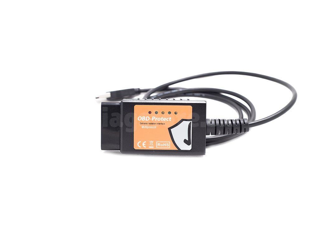 Adaptér OBD-Protect obsahuje OBD-čip pre MultiECUScan. Okrem toho galvanické oddelenie poskytuje účinnú ochranu pred poškodením počítača a riadiacej jednotky vozidla. Vďaka dodatočným úpravám umožňuje adaptér spoľahlivú komunikáciu cez zbernicu CAN. Na rozdiel od lacných adaptérov ELM, ktoré majú problémy s nízkou rýchlosťou CAN-BUS, je dosiahnutá 100 % kompatibilita s talianskymi vozidlami. Tento adaptér odporúča pre jeho vynikajúce vlastnosti priamo výrobca MultiECUScan.