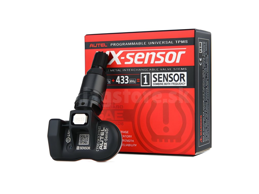 Univerzálny senzor Autel MX TPMS pre frekvencie 433 a 315 MHz. Obsahuje gumový ventil.